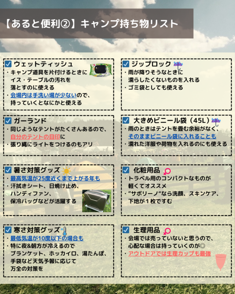 【アラバキ2026キャンプ】キャンプ泊の持ち物を徹底解説!|防寒対策は万全に