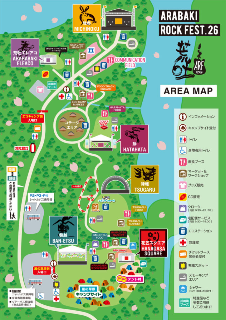 詳しくは2026年ARABAKIのエリアマップを見てください。