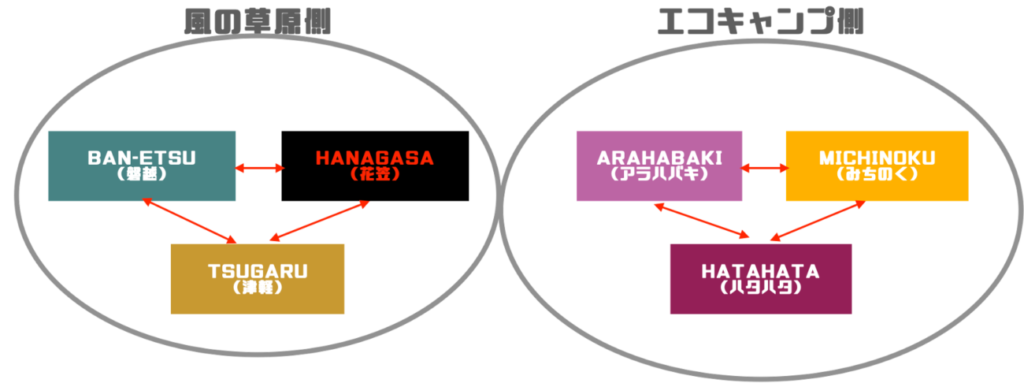 - エコキャンプ入場口側と風の草原入場口側に分かれている
